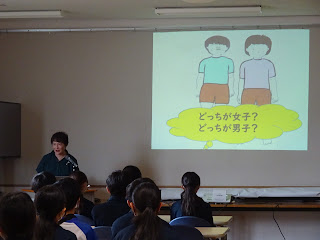 2学年では、講師の方をお招きし「性の多様性」についてのお話をしていただきました。講話では、性的指向、性自認など、性のあり様は多様であることや、自分自身も他者も多様な性の中に位置づく対等な存在であることを学びました。また、「女らしさ」「男らしさ」について班ごとに話し合い、お互いに意見を伝えあうことで、今後自分たちはどのように行動していくべきか考える時間となりました。